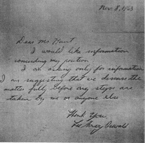 The recently declassified CIA documents mentioned above details another interesting KGB operation (also described in the Mitrokhin archive). In 1975, copies of a note that purported to be from Lee Harvey Oswald were sent from Mexico to three American conspiracy theorists. The letter, dated November 8, 1963, was addressed to a Mr. Hunt and said, “I would like information regarding my position” and “am suggesting that we discuss the matter fully before any steps are taken by me or anyone else.”