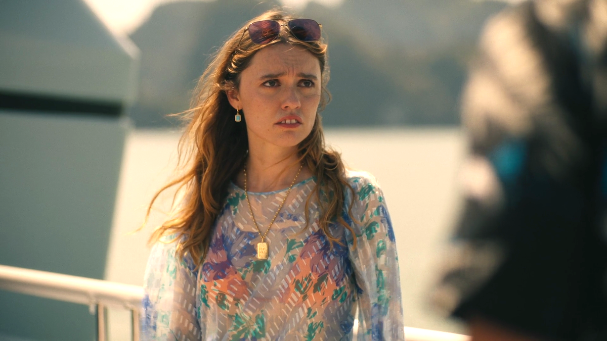 Their elder son, Saxon (Patrick Schwarzenegger), works for his father and has only three interests: getting ahead, getting laid, and making protein shakes in his screeching blender (which is also a Chekhovian gun). Piper, the daughter (Sarah Catherine Hook), thinks she wants to enter the local Buddhist monastery, but changes her mind when she discovers that her cell isn’t air-conditioned and the monastery food isn’t organic. The younger son, high-school senior Lochlan (Sam Nivola), is a confused people-pleaser awaiting his first sexual experience. We spend a great deal of the season’s eight-plus hours with this vapid family and I never managed to care whether or not Lochlan lost his virginity or Piper ended up becoming a Buddhist nun. White tries to liven things up by staging an ecstasy-fuelled threesome for the two brothers and Chloe on Greg’s yacht, during which Lochlan masturbates Saxon. But since the scene never receives a satisfactory pay-off, I was left to wonder what it was there for.