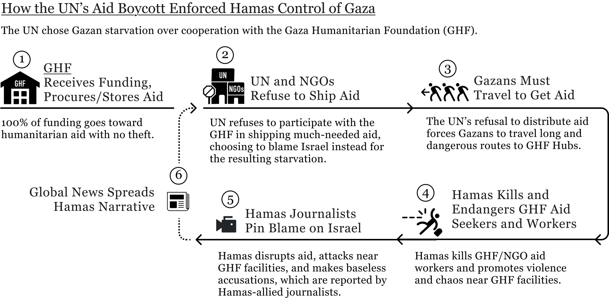 Because the GHF coordinated their operations with Israel, they came under intense scrutiny. The UN categorically rejected cooperation with them—even after over 200 faith-based and Israel advocacy organisations published an open letter urging them to do so in August 2025. Rather than reporting on the UN’s obstinate refusal to work alongside this efficient means of aid delivery, media outlets overwhelmingly blamed Israel for the resulting shortfall in aid. UNRWA’s refusal to deliver aid to areas of Gaza outside the GHF’s reach forced Gaza residents to travel long, dangerous routes to obtain food. The UN claims that hundreds of Gazans were killed “in the vicinity of GHF sites”—attributing the deaths to the Israeli military. Israel strongly denies the accusations and has released testimonials from Gazan aid-seekers explaining how Hamas tries to disrupt the aid system through violence and manipulation. “This is how Hamas operates—they deliberately fire at people and want it to appear as though the army is the one shooting,” reported one Gaza resident. GHF workers are also at risk. Chapin Fay reports of a particularly shocking incident in mid-June 2025, when Hamas hijacked a bus transporting GHF workers and murdered nine of them. The wounded survivors of the attack were taken to Nasser Hospital (where Doctors Without Borders were operating) but were “refused treatment and left to die in the parking lot.”