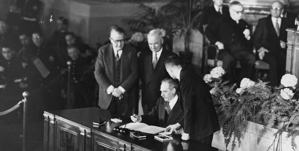 US President Harry Truman led the construction of the liberal international order in the late 1940s. And the United States continued to play a central role in the United Nations, the International Monetary Fund, the World Bank, the North American Aerospace Defense Command, and, of course, NATO itself. Of that organisation’s founding in 1949, Truman said: “In this treaty, we seek to establish freedom from aggression and from the use of force in the North Atlantic community.”