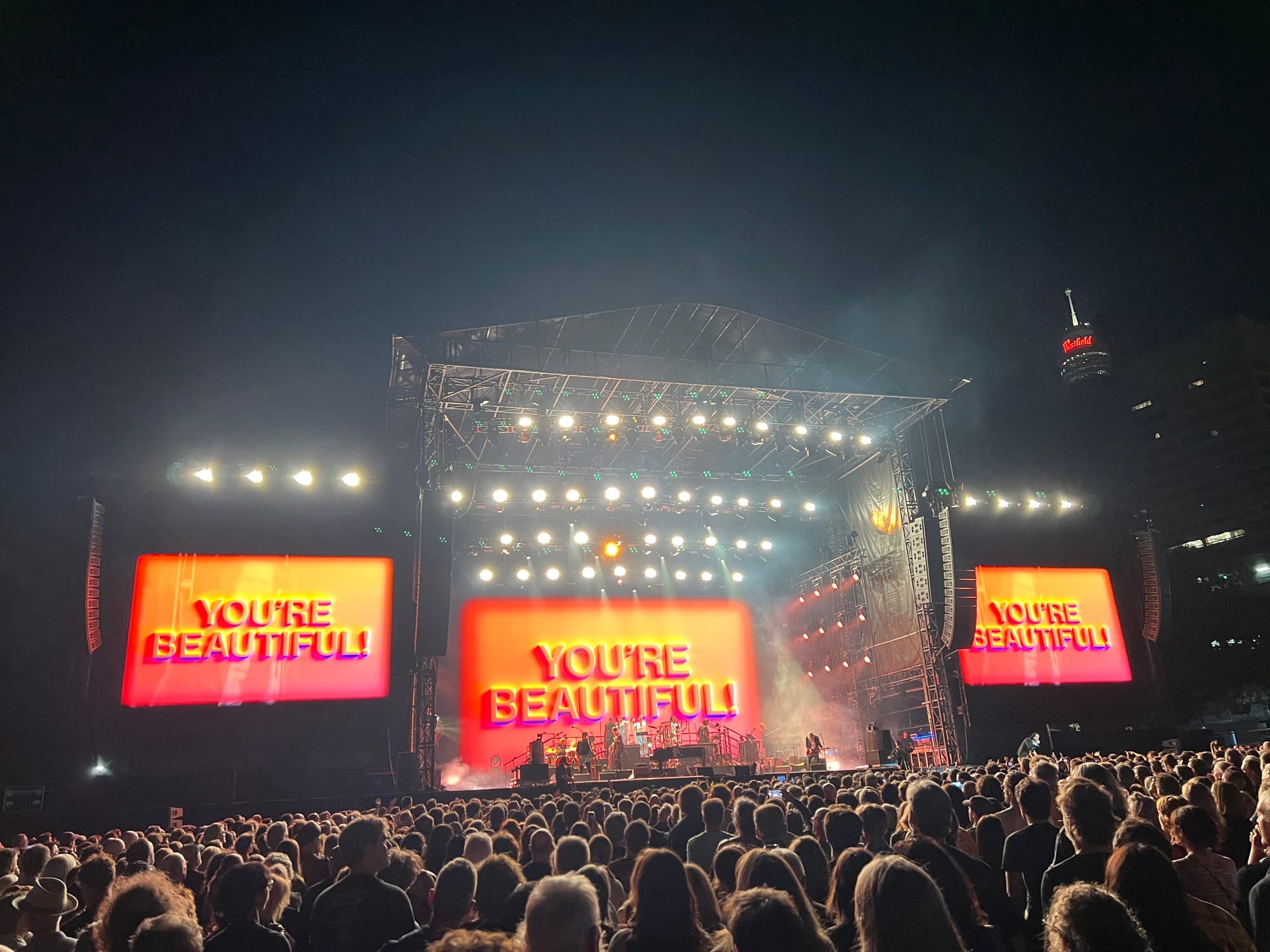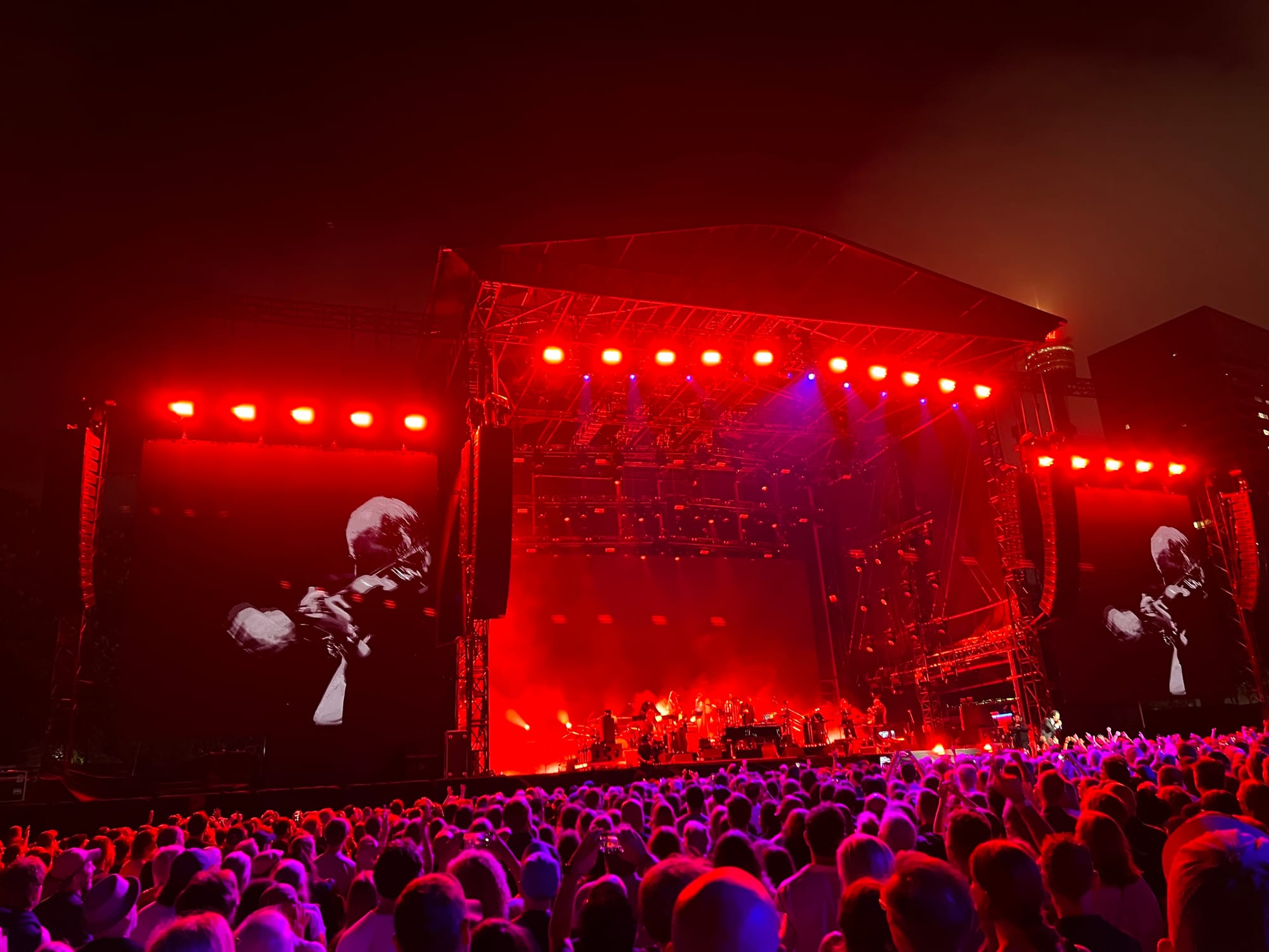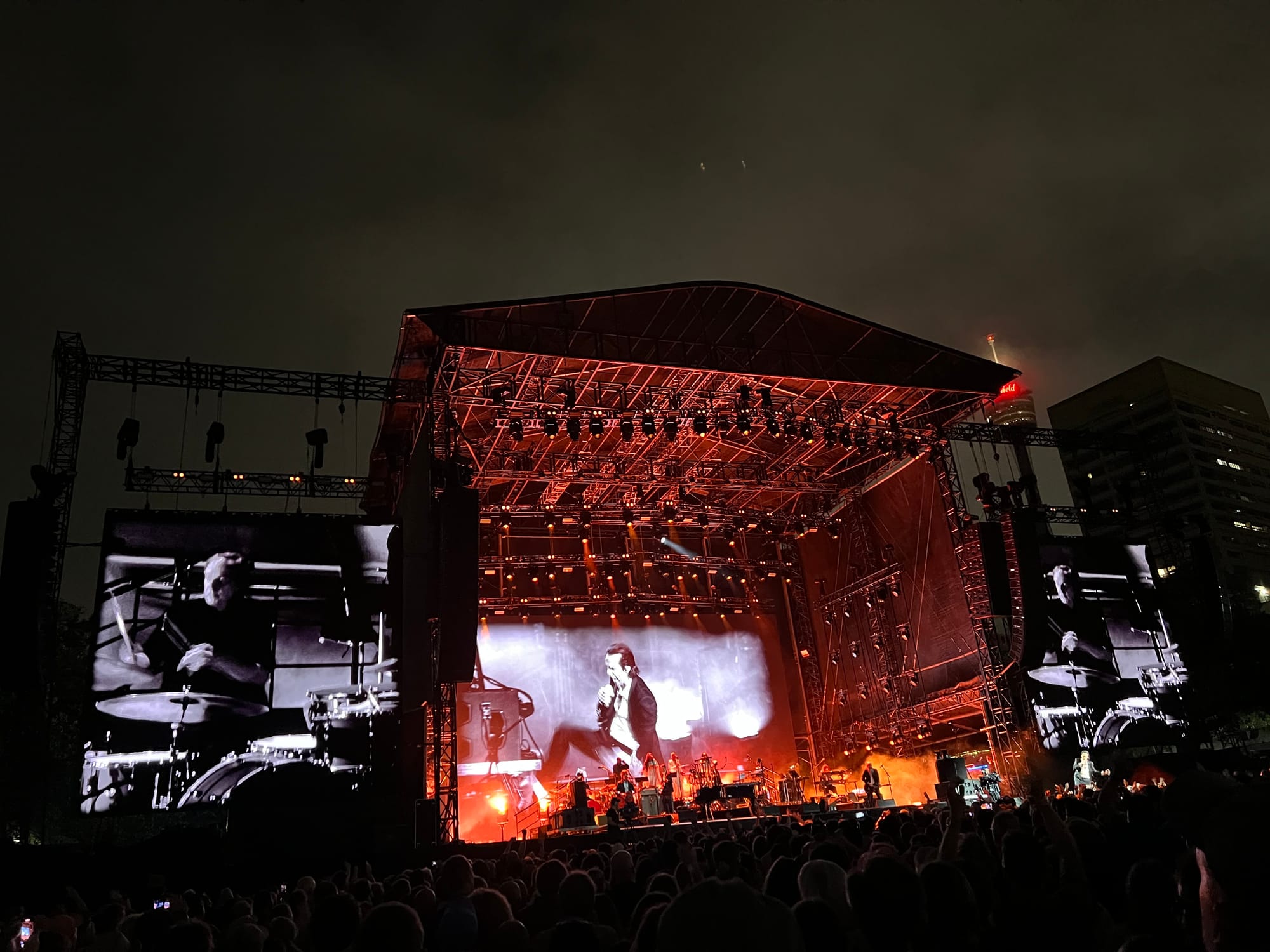 Nick Cave and the Bad Seeds played two huge Friday and Saturday concerts here across a long weekend that culminated in Australia Day on Monday 26 January. It had been barely more than a month since the antisemitic terrorist attack at Bondi Beach on 14 December. A muted Christmas and New Year had come and gone, followed by a National Day of Mourning on 22 January. In the aftermath of all this, there was an atmosphere of both serenity and vulnerability at The Domain: an unmistakeable yearning for a gathering that would be positive, perhaps even healing.